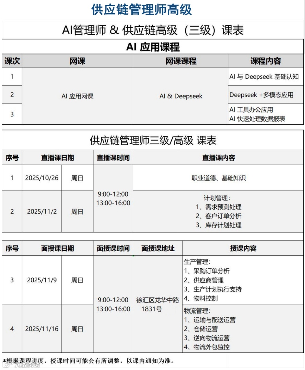 学员必看:要报名哪个班次私信老师确认切勿自行下单。供应链管理师三级原学费3250元,新题库新考试,培训内容进行重大调整,学费也将更加优惠 最新费用调整如下。