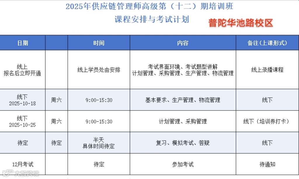 普陀华池路校区 特惠价2000元(含考试认定费550)线上报名缴纳,课表见下图一,普陀2025年政策针对高级项目额外区补1000,不限户口和社保是否在普陀区(补贴高班次)