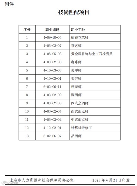 6.参加技岗匹配项目(见附件)职业技能评价取得职业技能证书的劳动者,申请补贴时需处于在沪就业状态,并提供在相应技能岗位就业的材料。