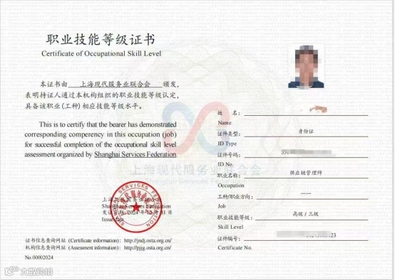 证书性质:职业技能等级证书发证单位:上海现代服务业联合会国家人力资源与社会保障部官网上查询http://zscx.osta.org.cn/