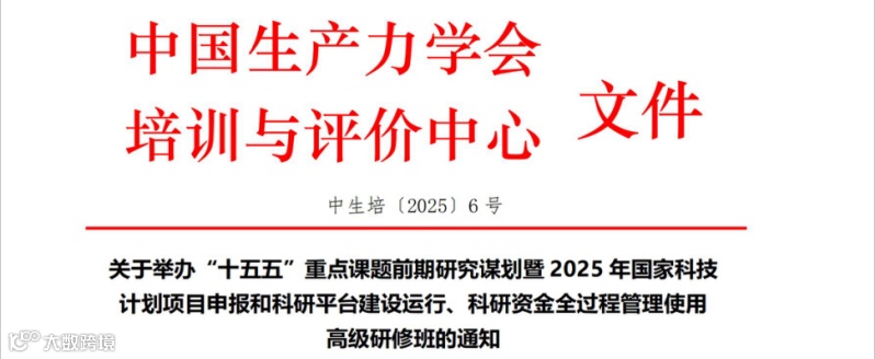 为高质量完成“十四五”规划收官,高标准谋划“十五五”规划发展,切实搞好科技计划项目储备谋划管理,提升项目申报成功率,确保科研资金规范、合理、高效使用,中国生产力学会培训与评价中心决定于2025年3月12-15日在北京、3月19-22日在成都、4月9-12日在深圳、4月16-19日在上海举办“十五五”重点课题前期研究谋划暨2025年国家科技计划项目申报和科研平台建设运行、科研资金全过程管理使用高没研修班。