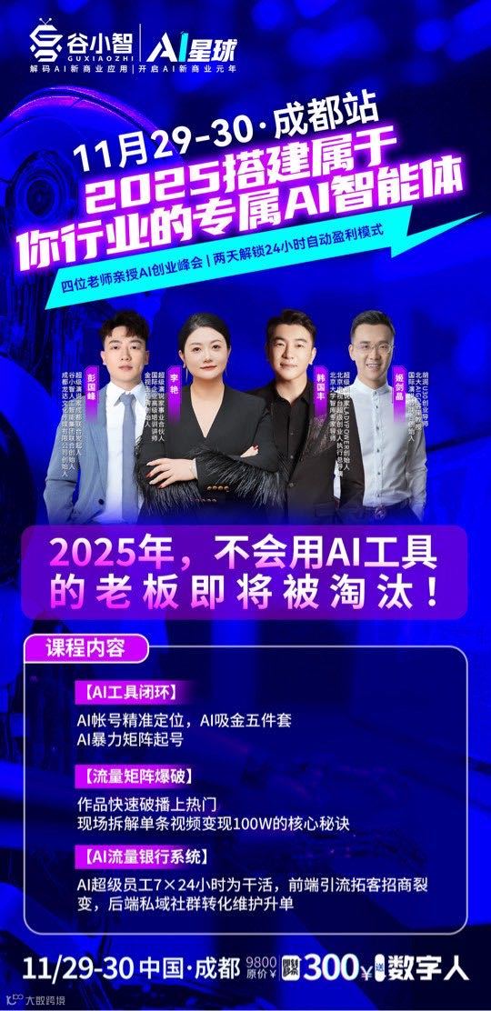 11月28-29日中国●成都|AI全域流量创业峰会