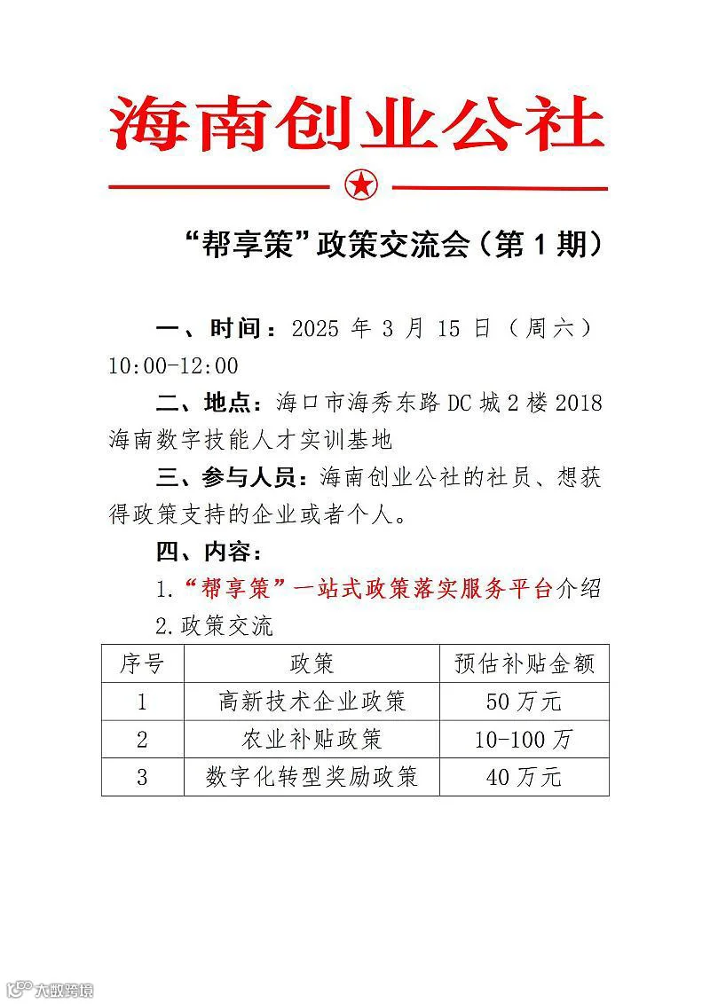 “帮享策”政策交流会-海南-2025