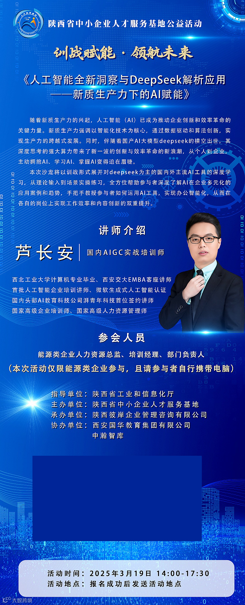 本次沙龙将以训战形式展开对deepseek为主的国内外主流AI工具的深度学习,从理论输入到场景实操练习,全方位帮助参与者深度了解AI在企业多元化的应用案例和趋势,手把手教授参与者如何运用AI工具,实现办公智能化,从而在各自的岗位上实现工作效率和内容创新的双重提升。
