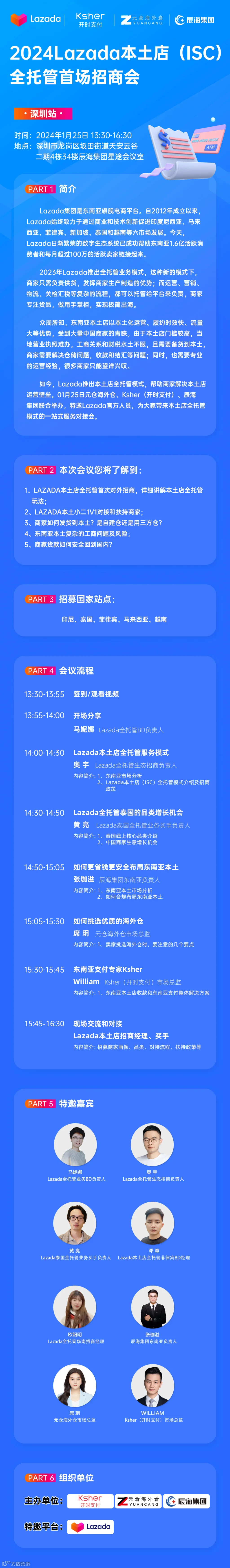 1月25日(周四),由Ksher开时支付、元仓海外仓、辰海集团联合举办,特邀Lazada官方人员,为大家带来本土店全托管模式的一站式服务对接会。