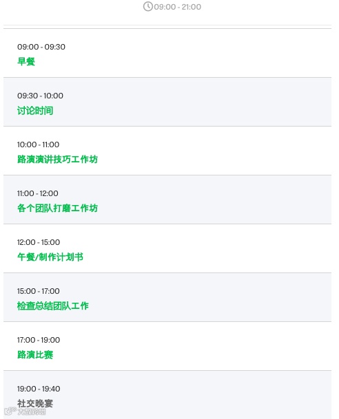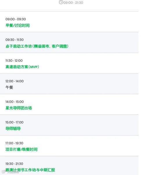 💡 创业周末是一个为技术及非技术创业者们提供体验式教育而设计的活动。活动共54小时,从周五晚上创业点子分享 (pitch)、头脑风暴到周六周日两天的商业模式创立、产品雏形设计和营销方案确立,再到星期天晚上的路演。