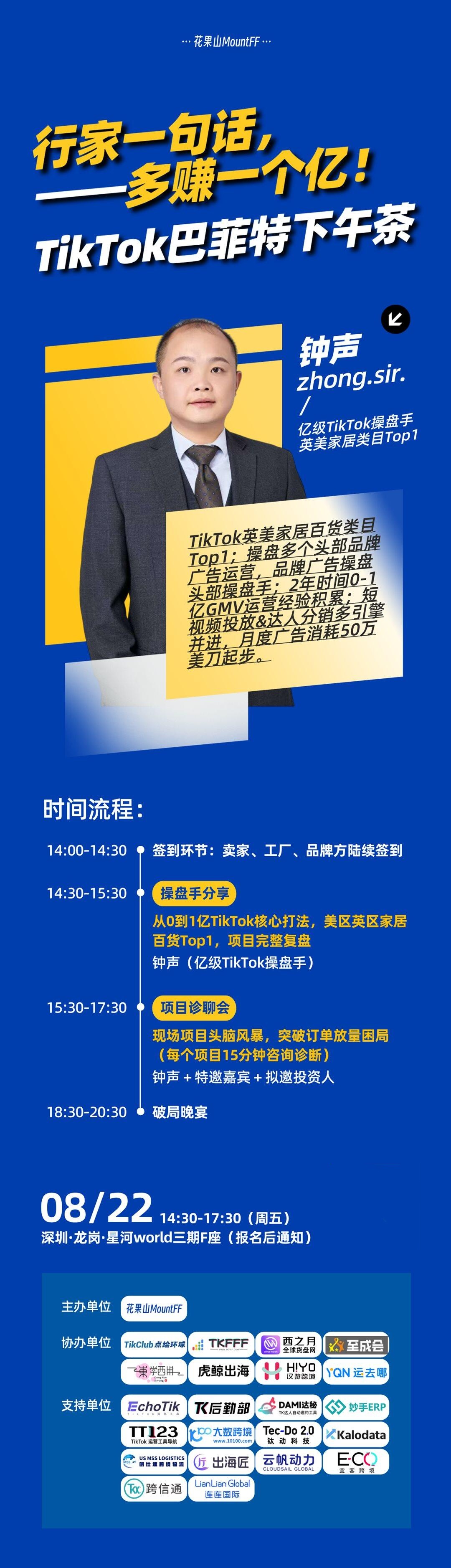 TikTok短视频爆单&广告放量实战,暨《TikTok巴菲特下午茶(钟声专场)》——跨境卖家旺季充电