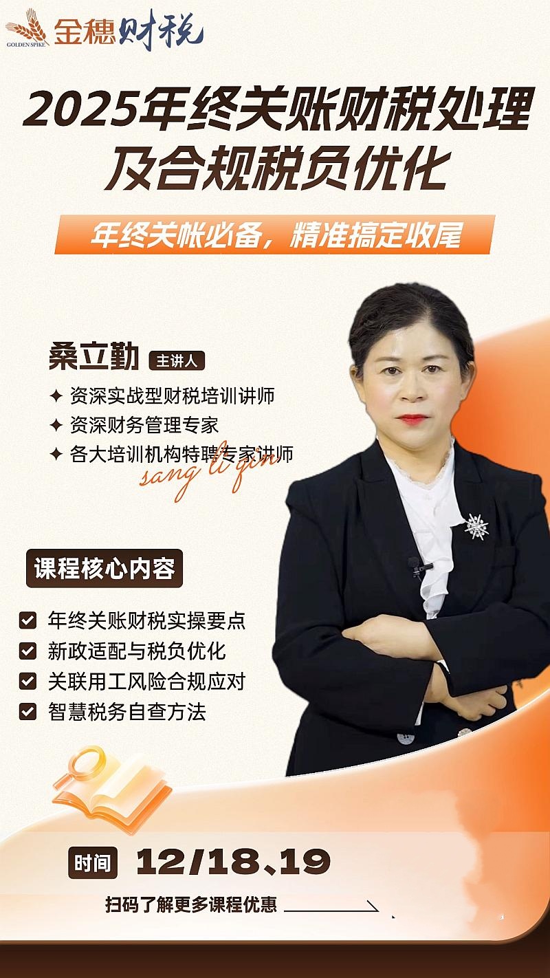 本课程立足业财税法协同视角,聚焦企业实际运营中的高频涉税难题,助力财务及管理人士精准把握政策变化,规**务风险,实现合法节税与企业利益最大化。