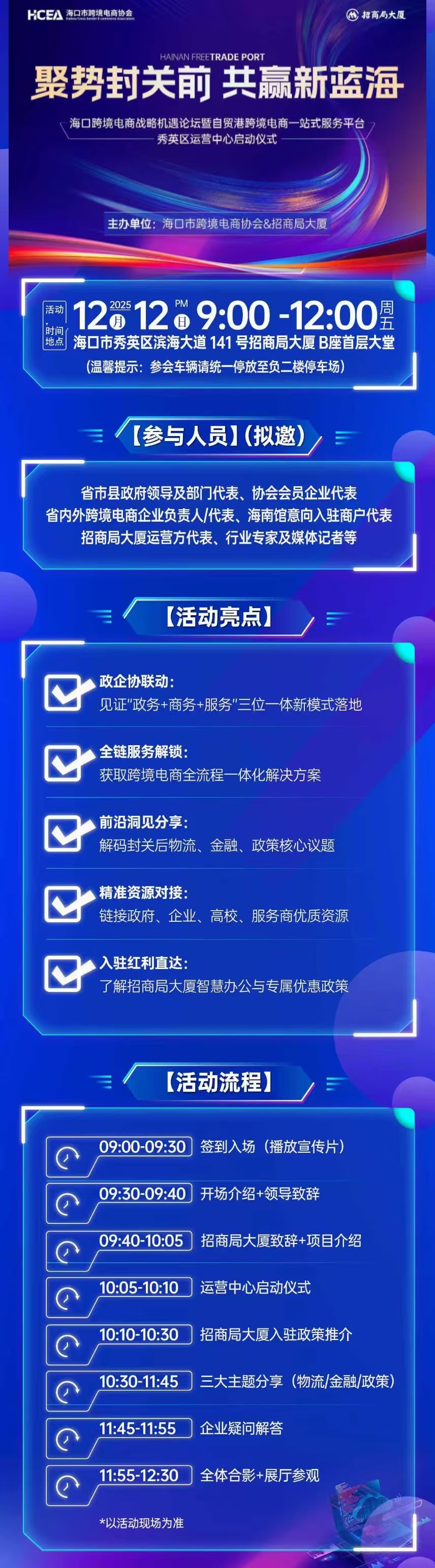 聚势封关前・共赢新蓝海—海口跨境电商战略机遇论坛暨自贸港跨境电商一站式服务平台秀英区运营中心启动仪式