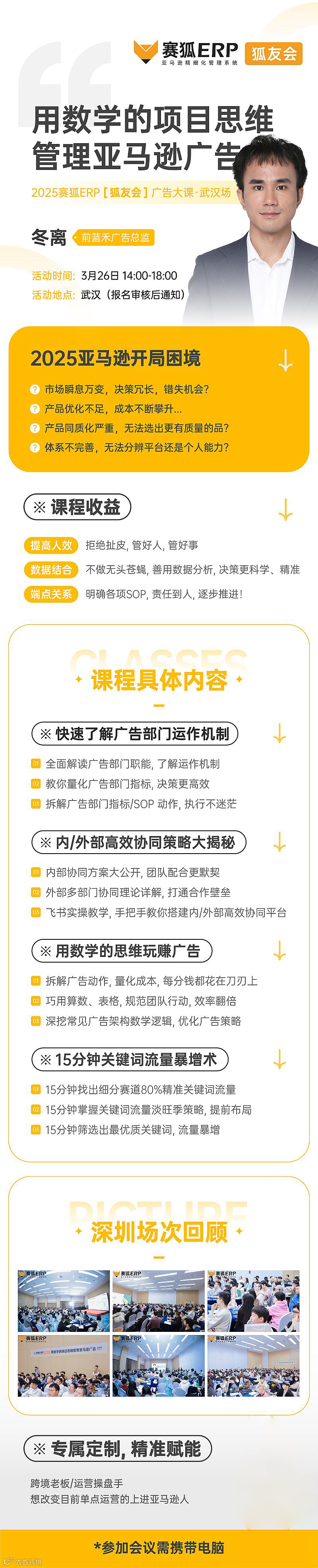 【武汉场】狐友会-用数学的项目思维管理亚马逊广告大课