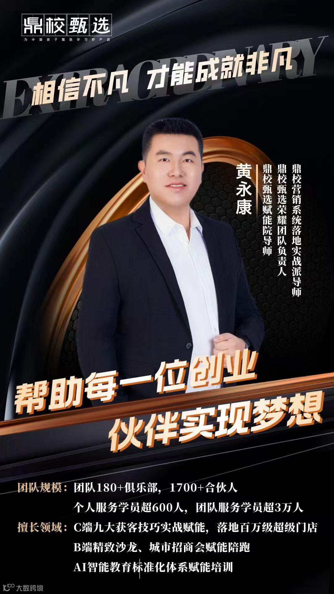与时代同梦向上迎接“AI”教育新时代,2025年3月27日AI教育鼎校甄选超级项目财富说明大会主邀嘉宾黄永康