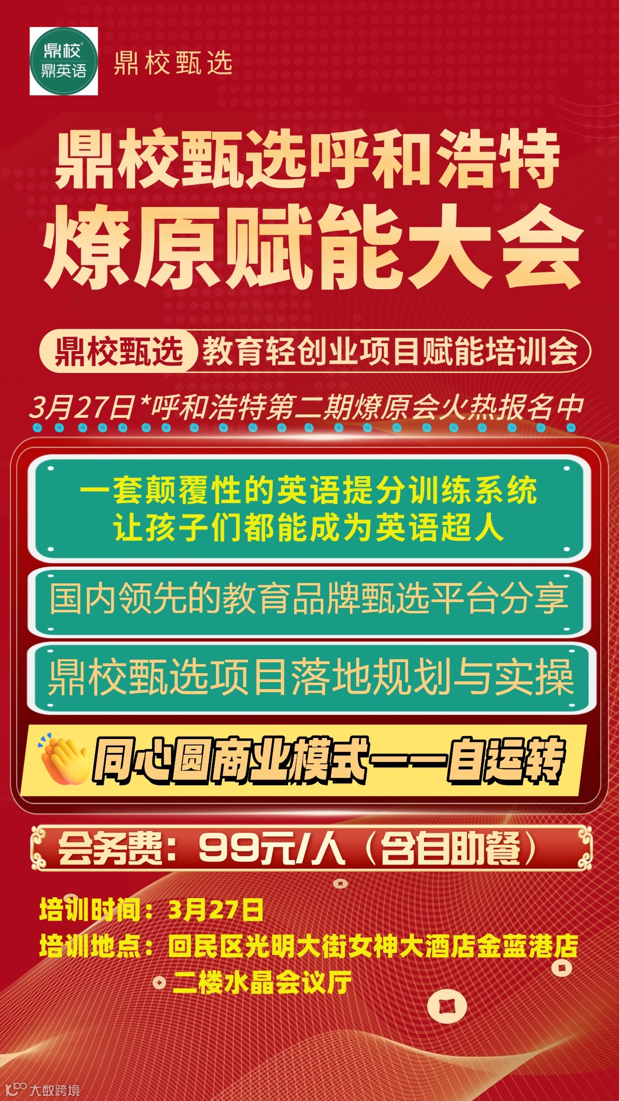 2025年3月27日呼和浩特AI教育鼎校甄选超级项目财富大会