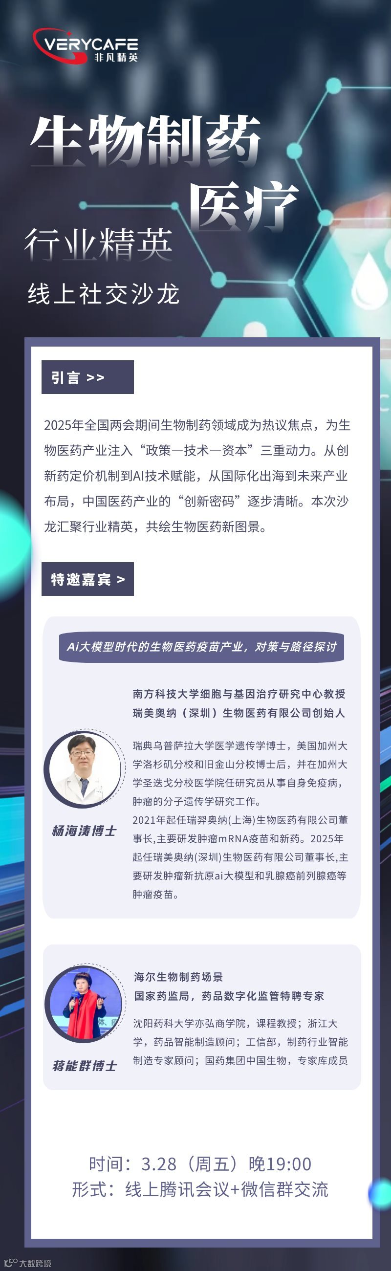 【3.28 周五晚 线上】生物制药、医疗行业精英线上社交沙龙|Ai大模型时代的生物医药疫苗产业,对策