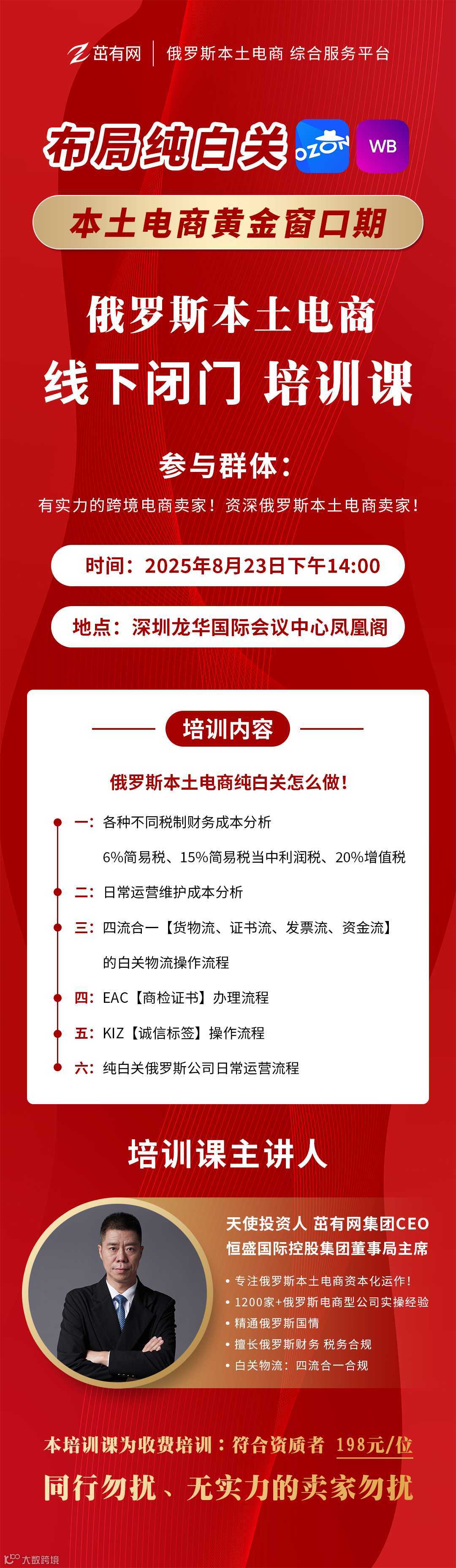 俄罗斯本土电商线下闭门培训课,OZON,WB本土纯白关怎么做?