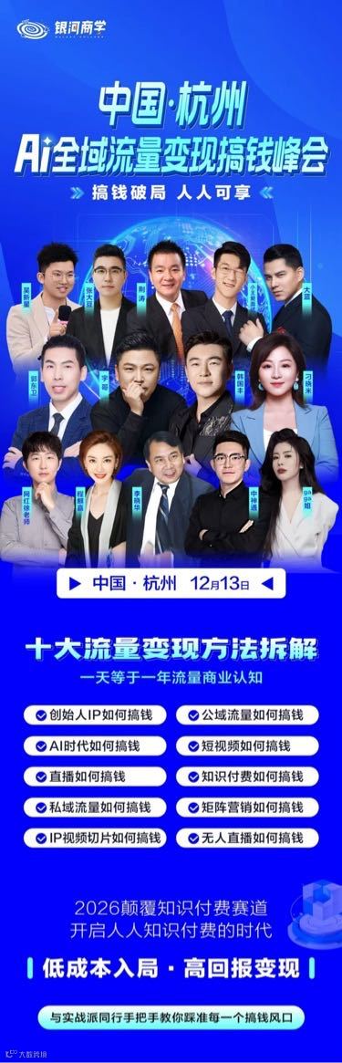12月13日杭州AI全域流量变现搞钱峰会