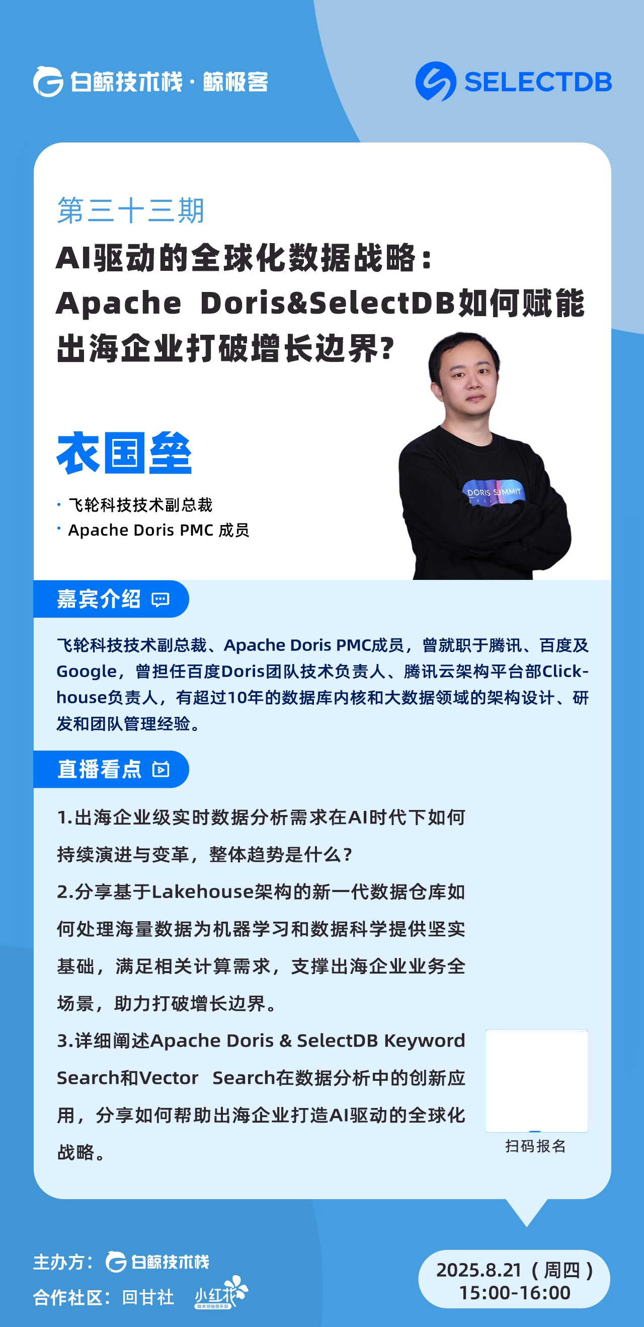 【白鲸技术栈】AI驱动的全球化数据战略:Apache Doris&SelectDB如何赋能出海企业打破增长边界? · 第三十三期(2025-08-21)