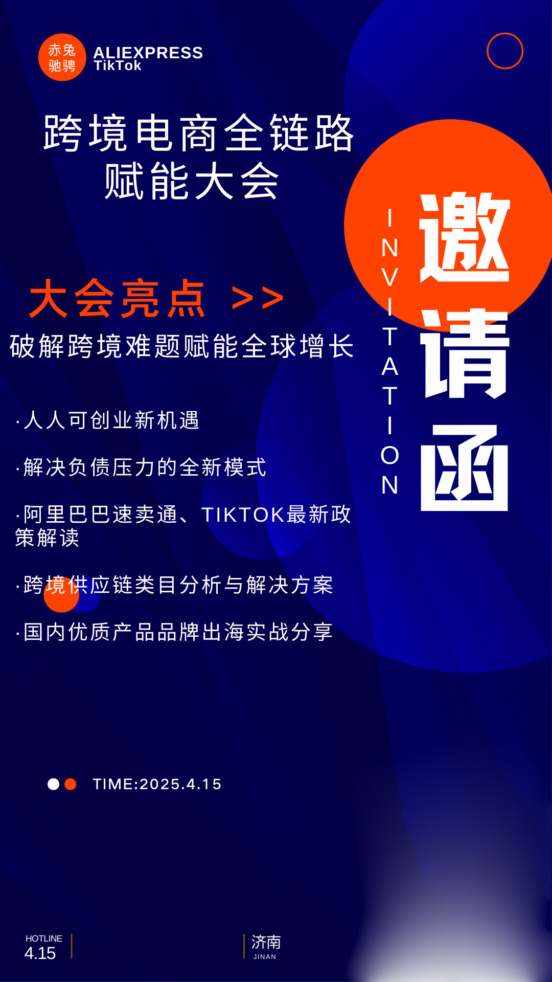2025年4月15日,中国优质品牌计划跨境电商峰会(济南站)将为你带来: