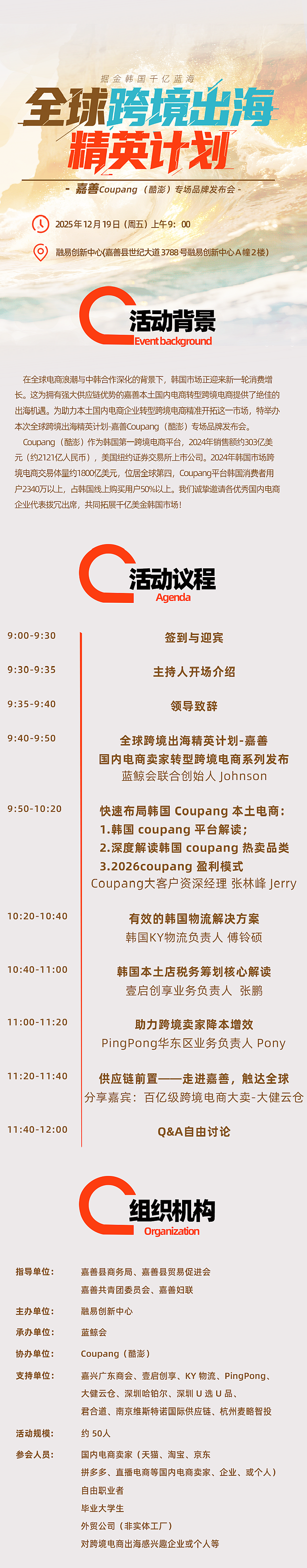 全球跨境出海精英计划-嘉善 Coupang (酷澎)专场 品牌发布会