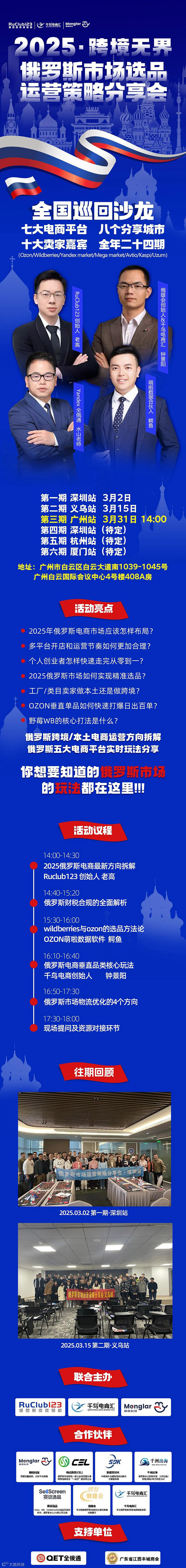 2025●跨境无界俄罗斯市场选品运营策略分享会第二期来了!一次报名,全年参加!先到先得!
