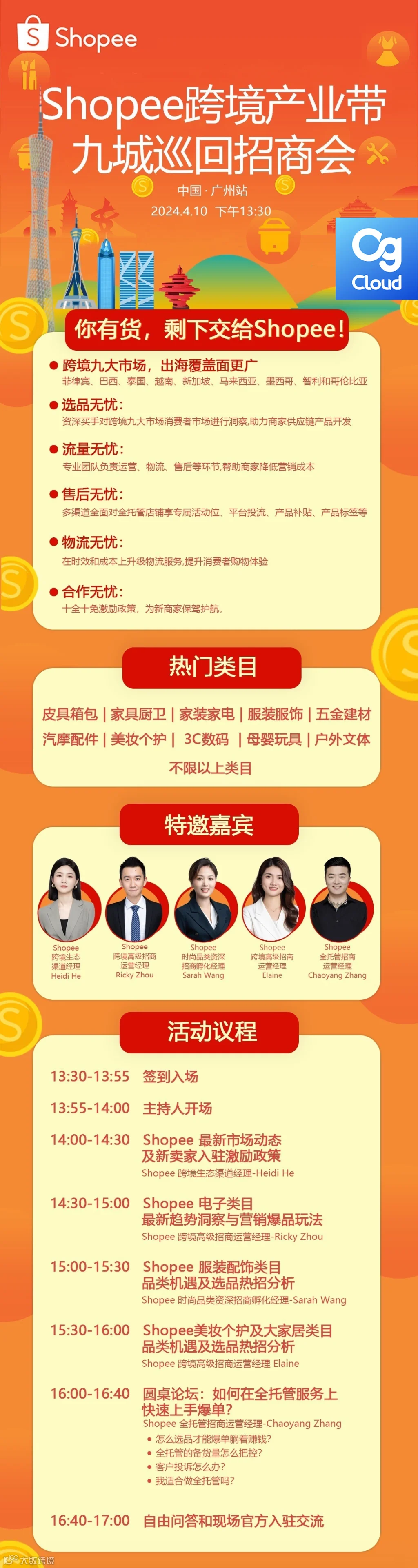 Shopee跨境产业带,九城巡回招商会,广州专场(全托管/自营业务)