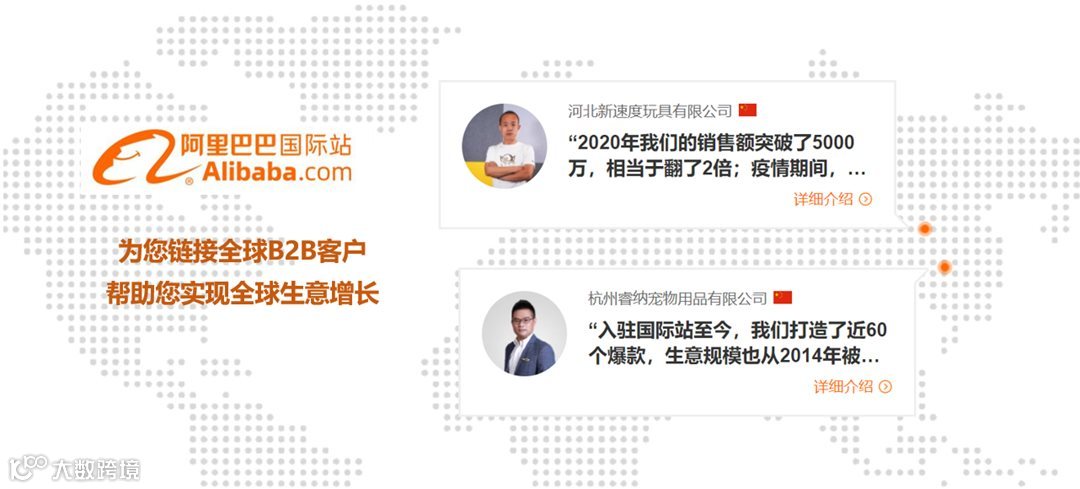 阿里国际站通过向海外买家展示、推广供应商的企业和产品,进而获得贸易商机和订单,成为企业拓展2B端跨境贸易的首选平台之一。
