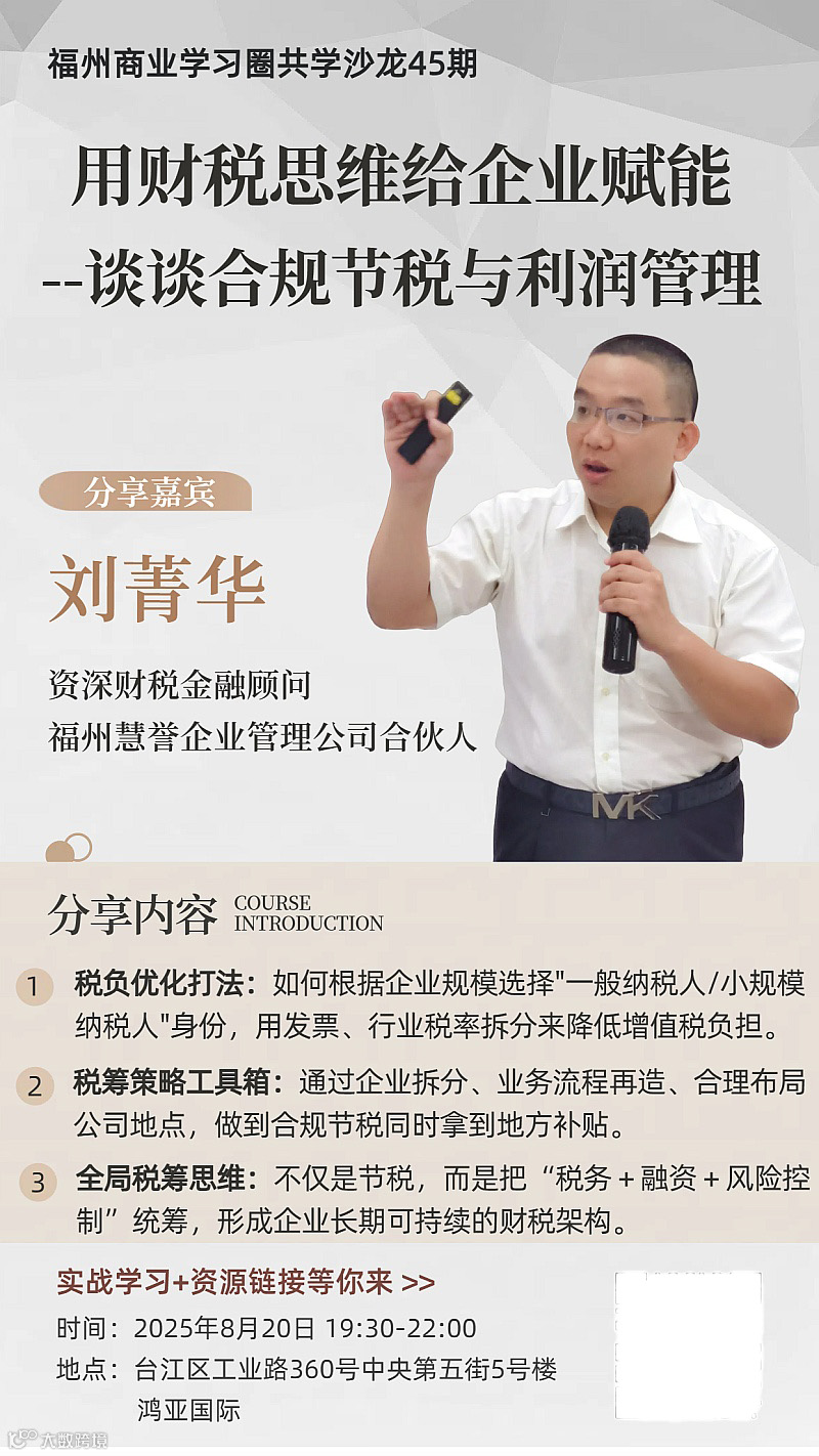 【共学沙龙】第45期:用财税思维给企业赋能 --谈谈合规节税与利润管理