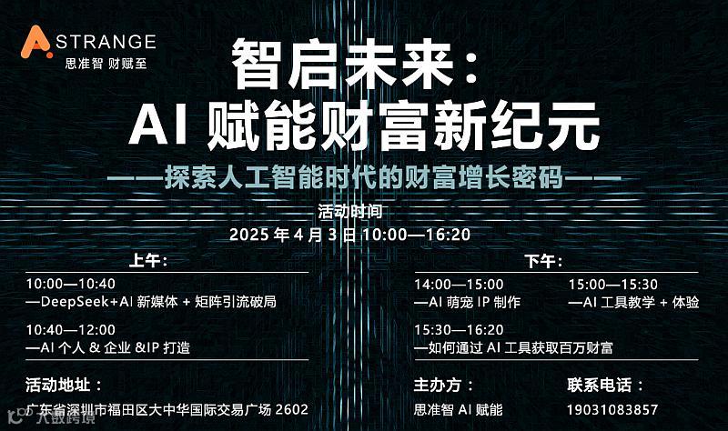 本次活动聚焦AI技术与财富增长的深度融合,从矩阵引流、IP打造到变现实战,为您揭秘如何借力AI工具突破传统边界,开启财富新纪元。无论您是创业者、企业主、内容创作者,还是渴望抓住AI红利的个人,这场活动都将为您提供可落地、可复制的前沿策略。