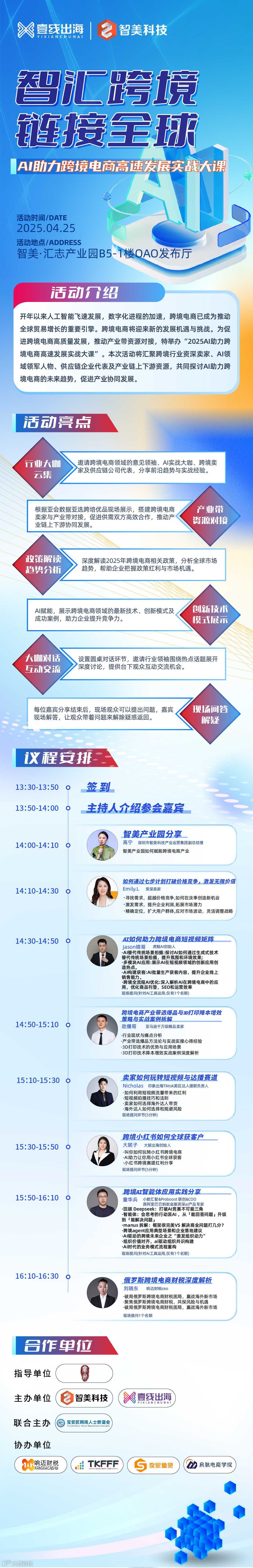 人工智能已经进入我们生活和工作,我们要拥抱,学习,接受并使用,为了将AI工具更好的运用到跨境电商领域,提高工作效率,降低运营成本,我们特举办专场会议,希望能给与大家带来帮助。