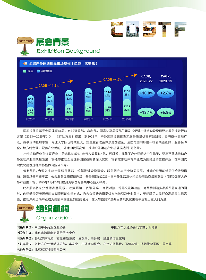 展会名称:2025中国户外生活及休闲运动用品交易博览会(简称“COSTF大户外产业展”)
