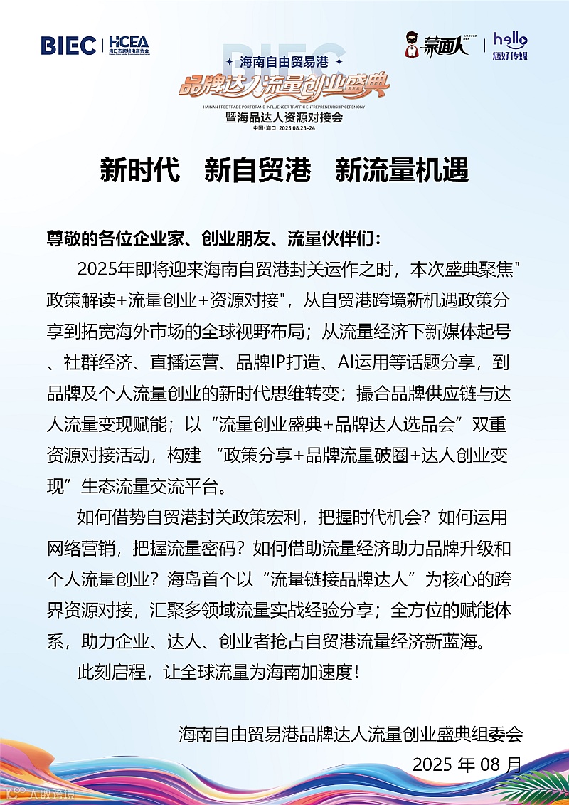 【2025.08.23海南】品牌达人流量创业盛典暨海品达人资源对接会