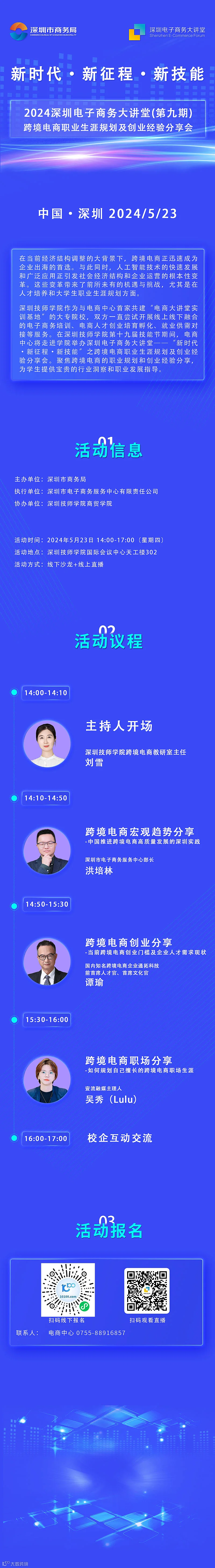 深圳电子商务大讲堂第九期——“新时代●新征程●新技能”之跨境电商职业生涯规划及创业经验分享会