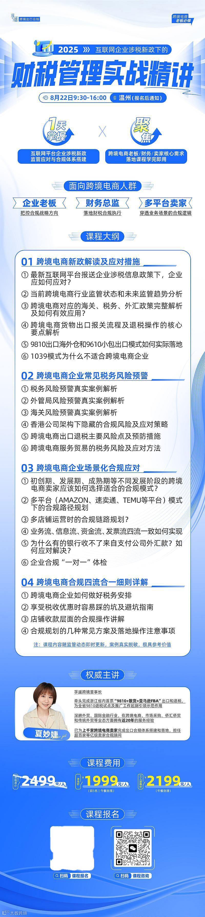 最新!互联网企业涉税新政下的跨境电商财税管理实战课
