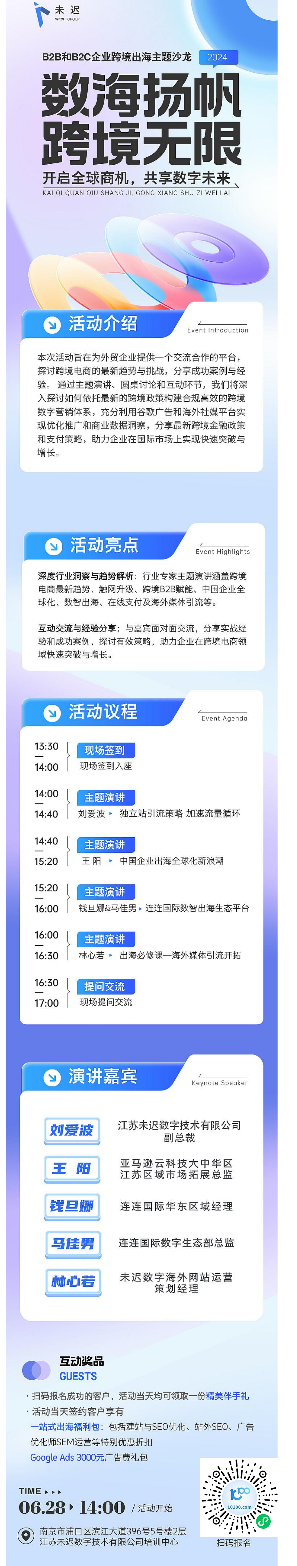 本次活动旨在为外贸企业提供一个交流合作的平台,探讨跨境电商的最新趋势与挑战,分享成功案例与经验。 通过主题演讲、圆桌讨论和互动环节,我们将深入探讨如何依托最新的跨境政策构建合规高效的跨境数字营销体系,充分利用谷歌广告和海外社媒平台实现优化推广和商业数据洞察,分享最新跨境金融政策和支付策略,助力企业在国际市场上实现快速突破与增长。