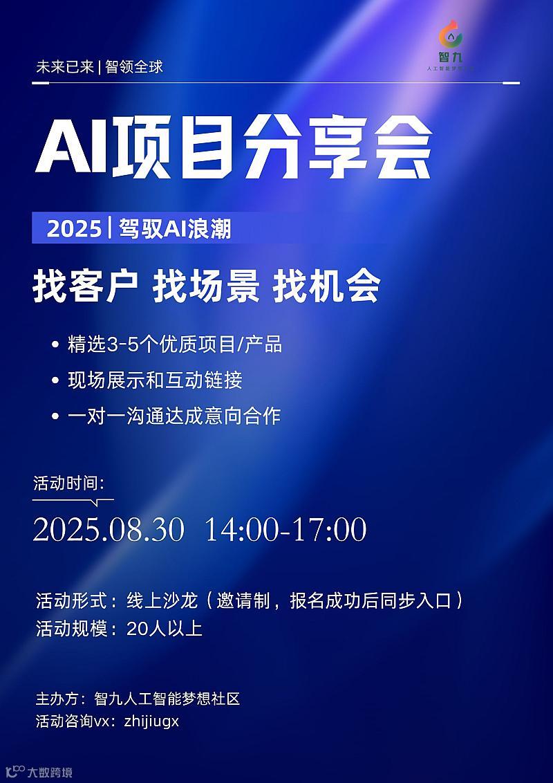 8月30日AI资源专场对接会【优质项目分享/产品分享/人脉链接】