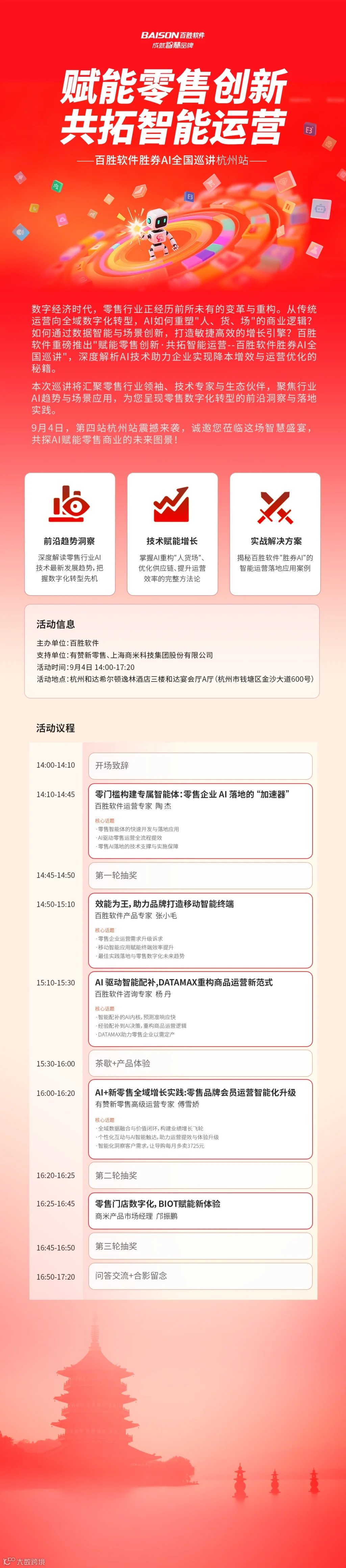 本次活动聚焦零售行业数字化转型,探讨如何通过AI技术助力企业实现降本增效与运营优化。活动将汇聚行业领袖、技术专家与生态伙伴,分享前沿洞察与落地实践,包括智能体构建、商品运营新范式、新零售全域增长实践等内容。