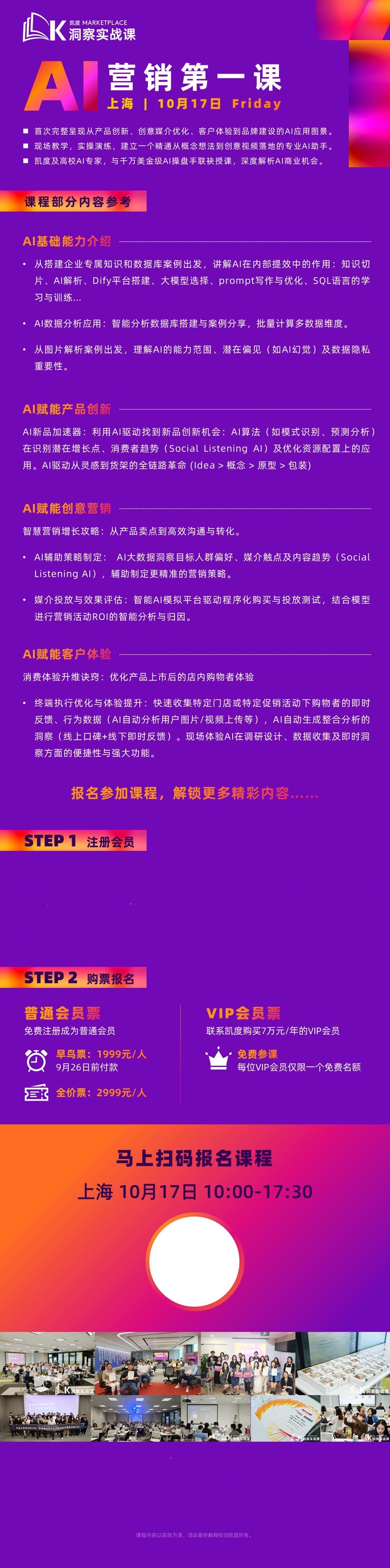 凯度Marketplace【AI营销第一课】10月17日 📍上海场线下全天课程,开放报名!