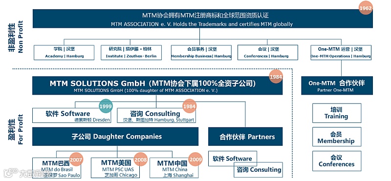 MTM 协会 (MTM ASSOCIATION e. V.) 是工业工程领域领先的技术协会之一。该非营利性协会成立于1962年,由多家著名德国企业共同创建。如今, MTM协会有超过600家会员企业,其中包括空客(Airbus)、奥迪(Audi)、戴姆勒(Daimler)、德国商业银行(Commerzbank AG)、德国铁路(Deutsche Bahn)等企业,并且有越来越多的来自服务、行政、教育以及研究领域的企业成为我们的会员。仅在德国,会员公司共拥有超过320万名员工。