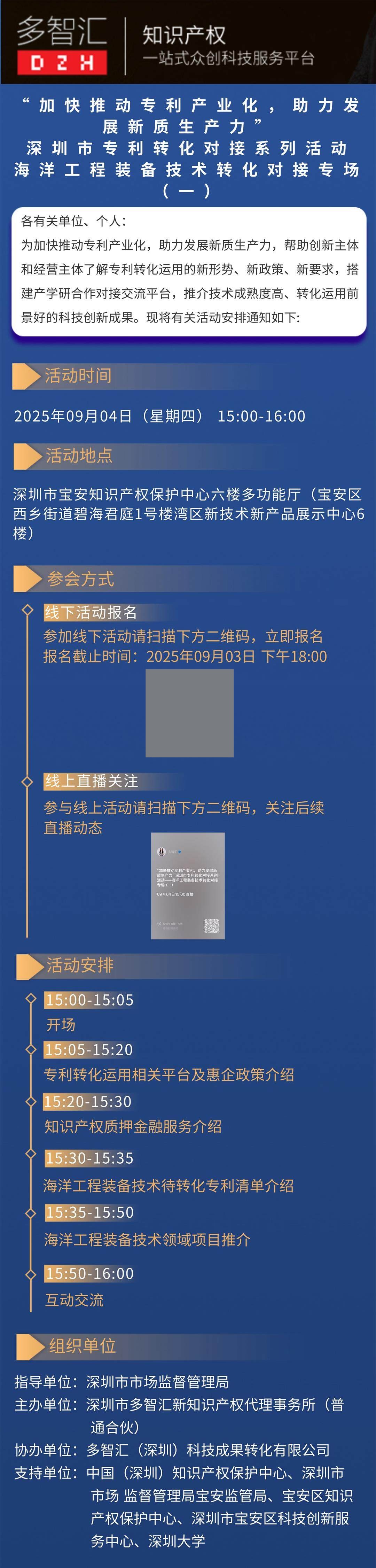 加快推动专利产业化,助力发展新质生产力 深圳市专利转化对接系列活动-海洋工程装备技术转化对接专场