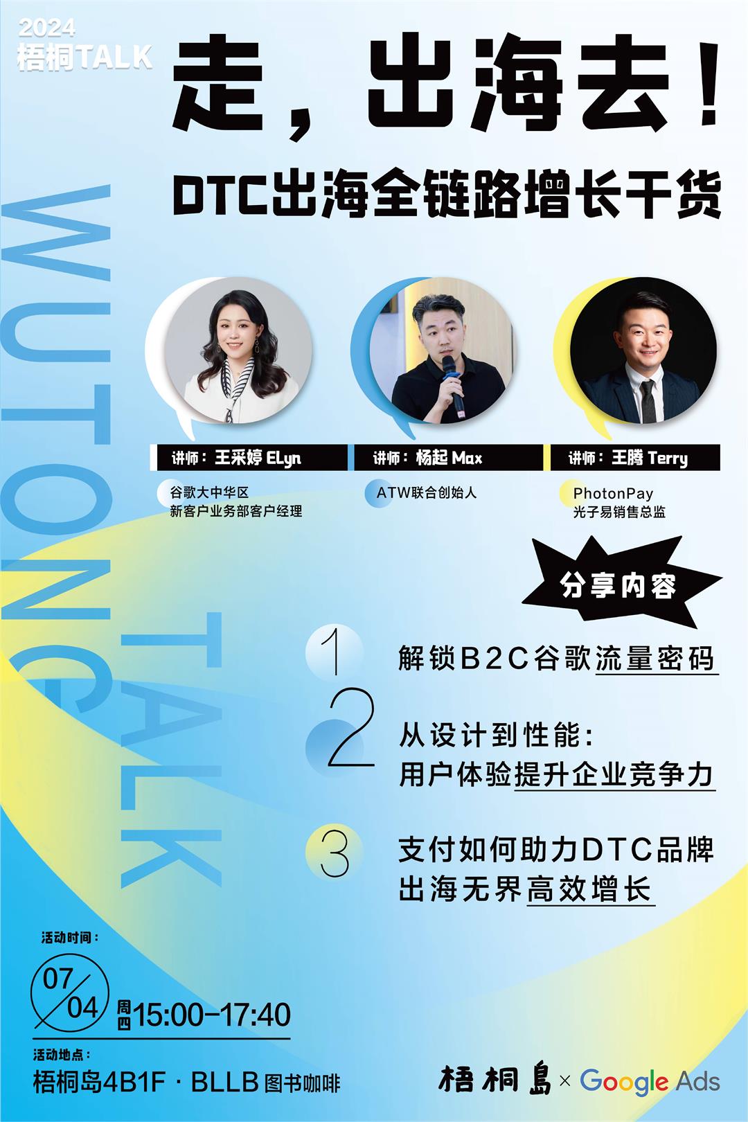 本期梧桐talk联合大中华区谷歌新客户业务部、ATW、PhotonPay光子易,和大家聊聊:DTC品牌出海全链路增长干货!