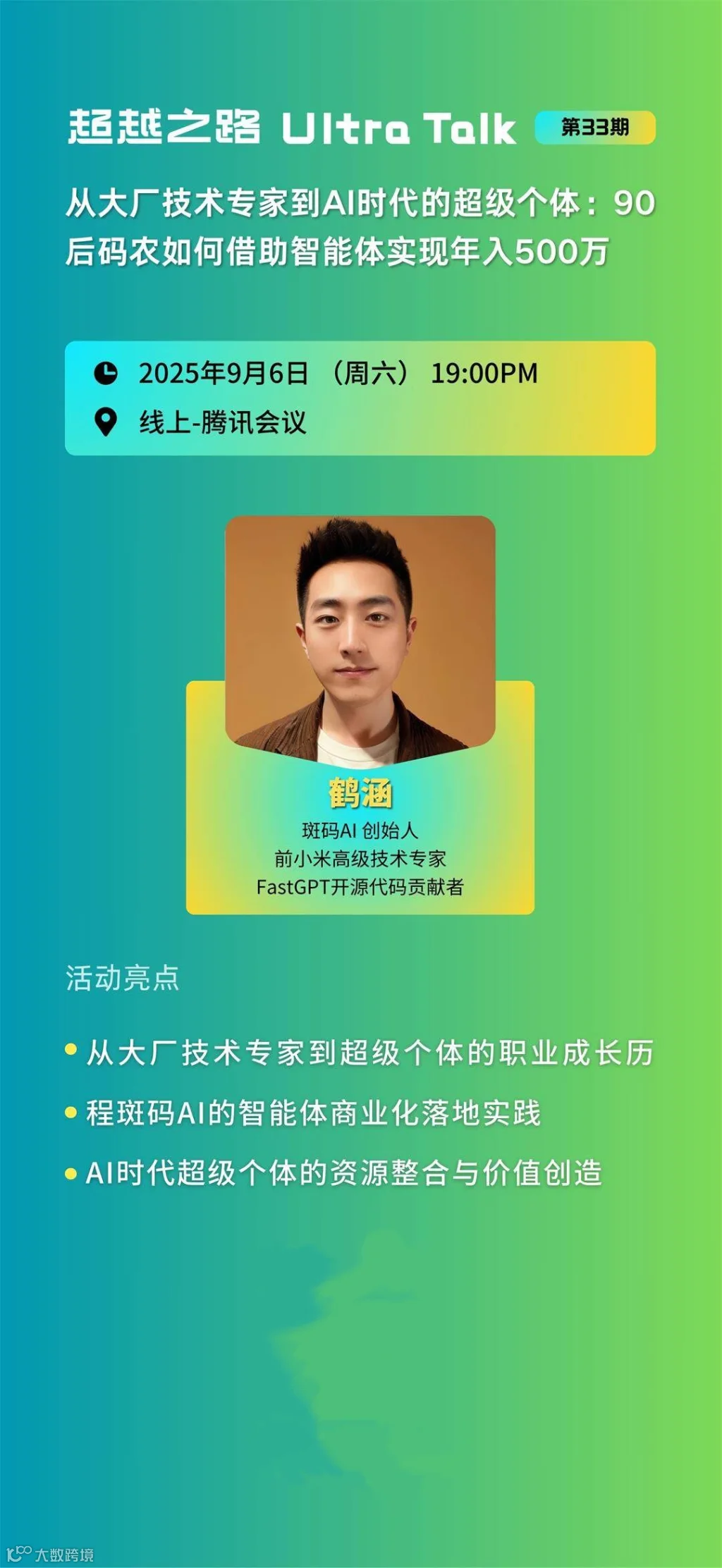 -主题:「从大厂技术专家到AI时代的超级个体:90后码农如何借助智能体实现年入500万」
