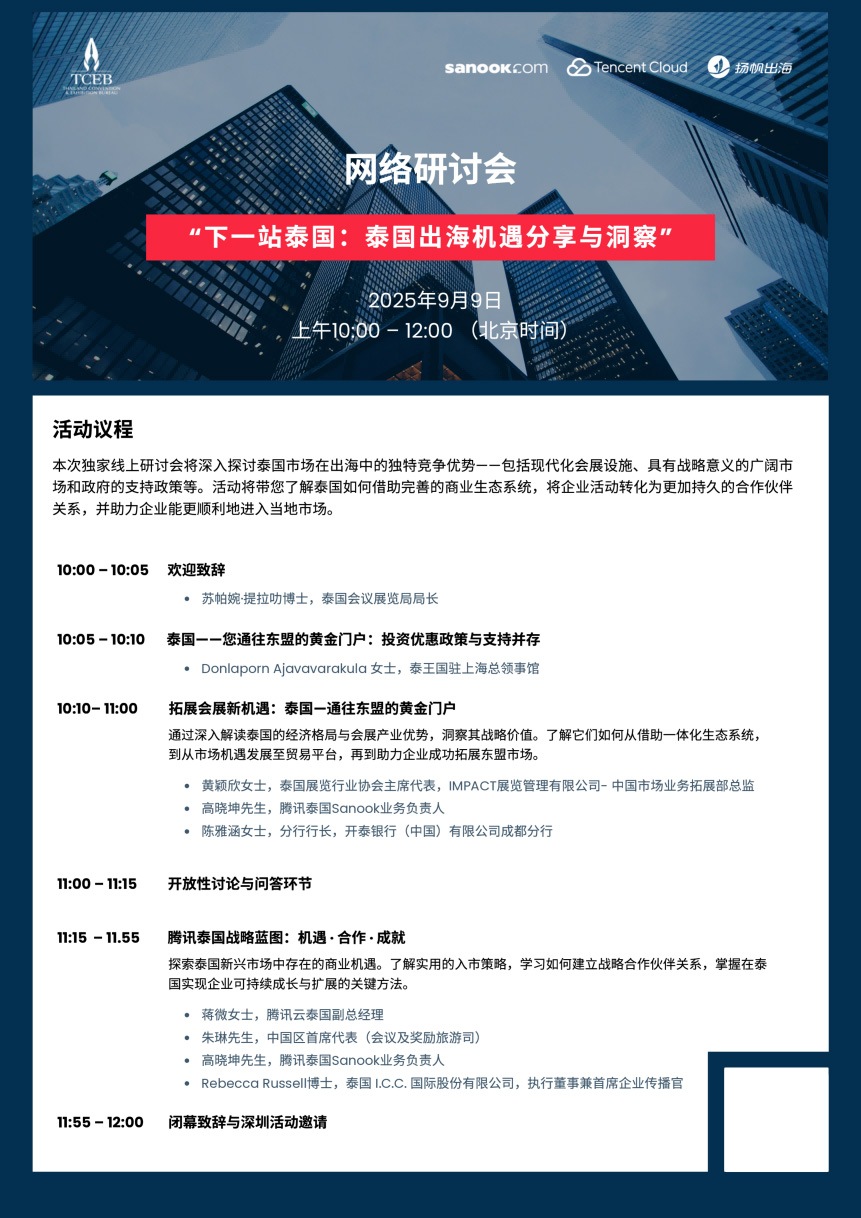 线上直播:下一站泰国:泰国出海机遇分享与洞察