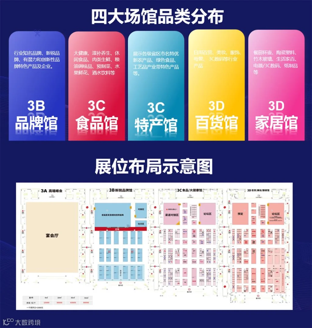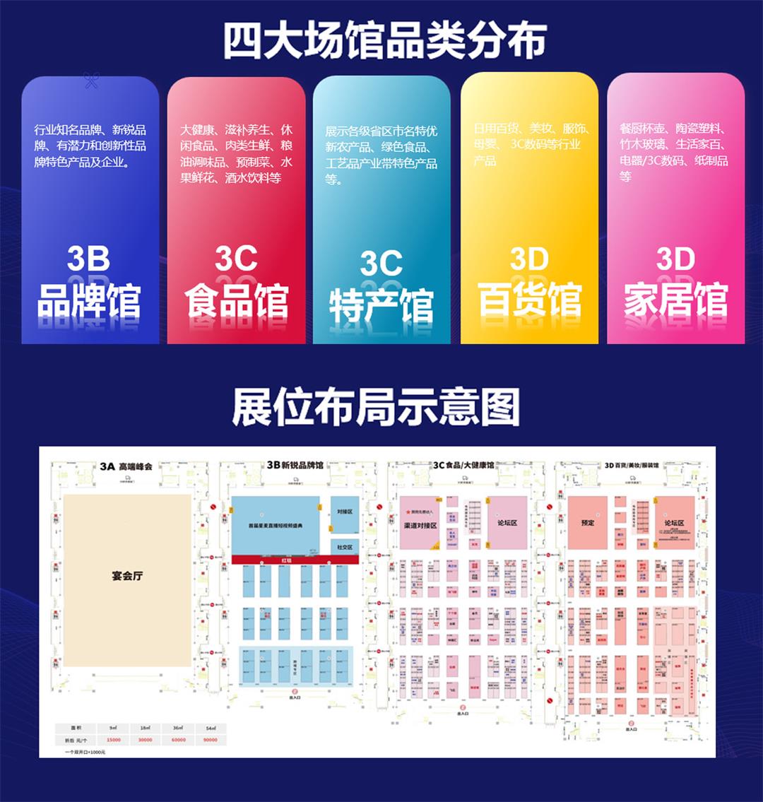 本次展会设有2000多个品牌展位,分为健康食品馆、区域特产馆、日用百货馆、新消费品牌馆、跨境电商馆。