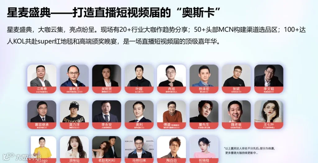 本次大会有两大重点活动,第一个是首届品牌出海跨境电商峰会,汇聚国内外跨境电商平台、大卖家、服务商,带你进入电商新蓝海。第二个是直播短视频行业的奥斯卡“星麦直播短视频盛典”,众多头部主播明星将到场领奖。
