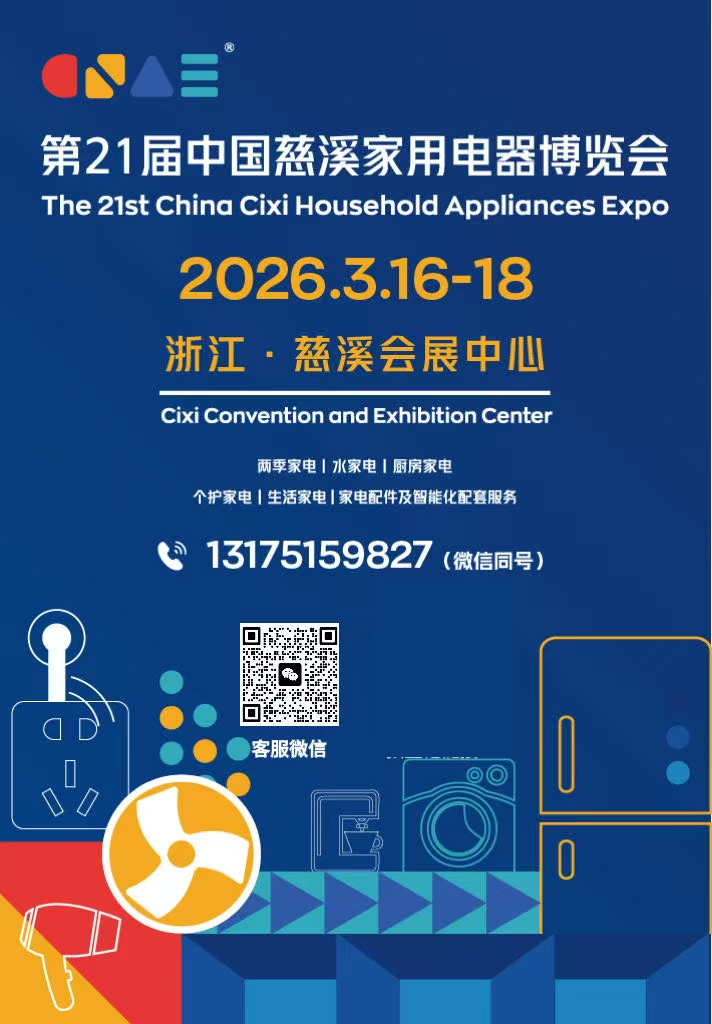 ◆第21届中国慈溪家用电器博览会将于2026年3月16日-18日在浙江省慈溪市会展中心举办。本届展会以“向新求质,拓渠创新”为主题,展出面积达30000多平方,将汇聚家电市场代理商、零售商、商超卖场、家电采购团等线下采购端;吸引电商平台、达人、团长等线上创新渠道;力邀外贸公司、跨境平台服务商等众多渠道的专业观众前来参观、采购。展会围绕“创新发展、创优发展、创牌发展”的新趋势,进一步推动家电产业发展,深层次优化提升“中国慈溪家用电器博览会”平台的服务实效。