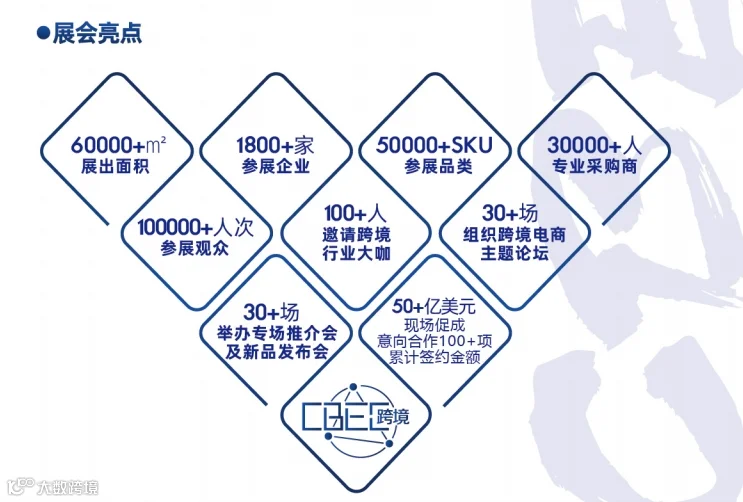 此次展会将以“拥抱数字经济,赋能产业集群;掘金跨境电商·助力品牌出海”为主题,旨在为跨境电商平台、服务商及外贸企业、采购商提供品牌展示、贸易洽谈、采购对接、资源共享为一体的高端交流合作平台。此次展会共设置“八大特色展区”,开设“八大主题论坛”开展“八大特色活动”,为展商提供“八大尊享福利”,为推动我国跨境电商高质量发展,群策全力、贡献力量。