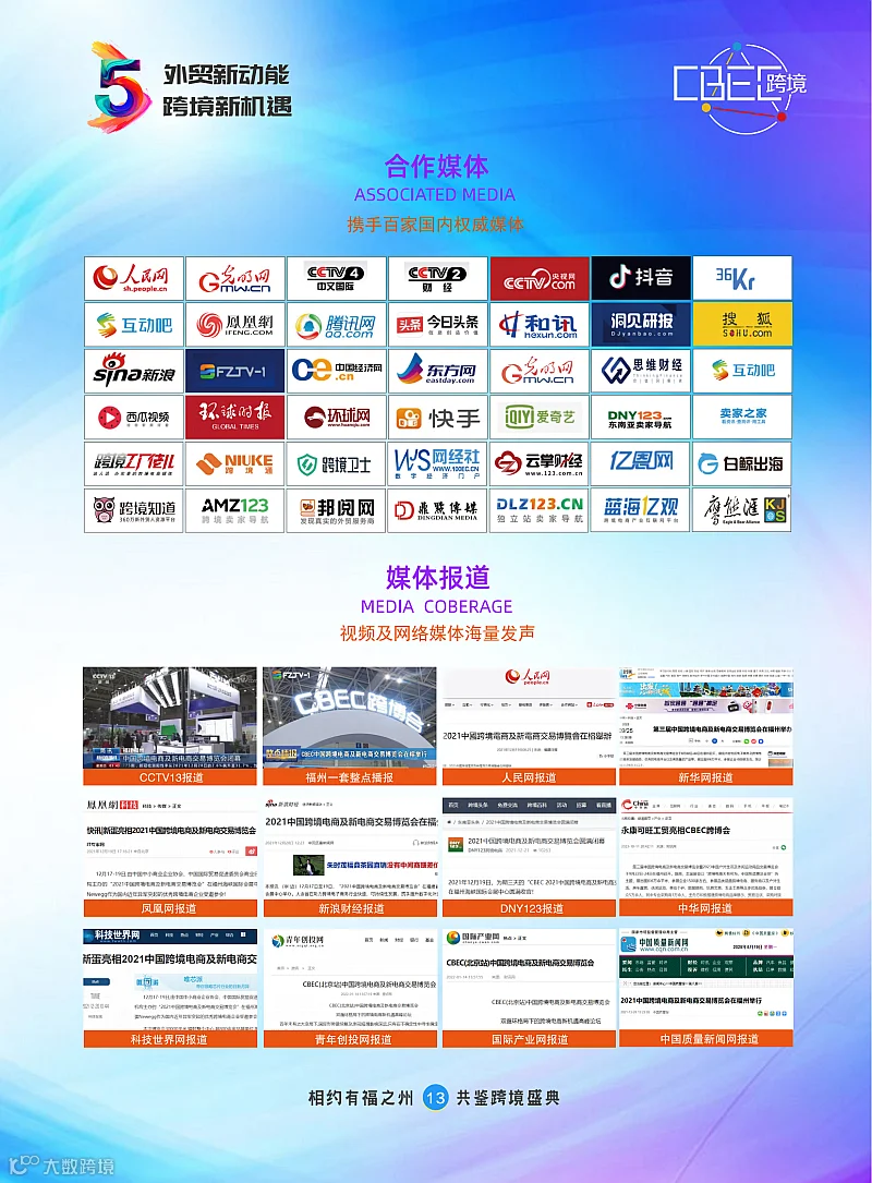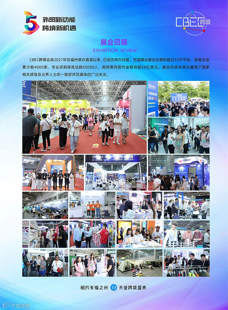 CBEC中国跨境电商及新电商交易博览会自2021年在福州举办首届以来,目前已成功举办四届,历届展会展出总面积超过10万平,参展企业累计3000余家,专业采购商高达50000余人,现场意向签约金额突破50亿美元,展会的成功举办赢得了国家相关领导及业界人士的一致好评及媒体的广泛关注,并于2023年9月1日,被列入由市场监管总局、商务部、工信部等25个部门联合开展全国“质量月”系列活动重点推荐名单。
