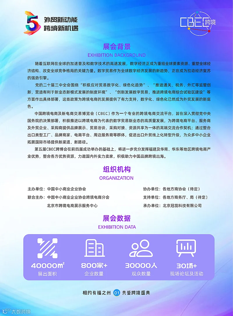由中国中小商业企业协会、中国国际商会、福建省自贸国际商联合主办的“CBEC中国跨境电商及新电商交易博览会”将于2025年11月7日-9日在福建·福州海峡国际会展中心隆重举办!