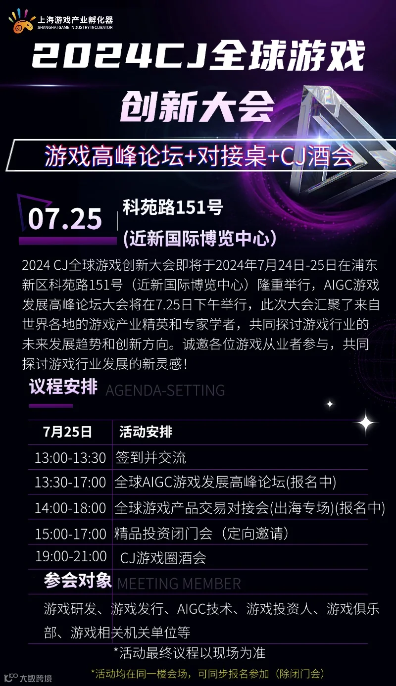 7.25•上海|2024 CJ全球游戏创新大会暨AIGC游戏路演报名
