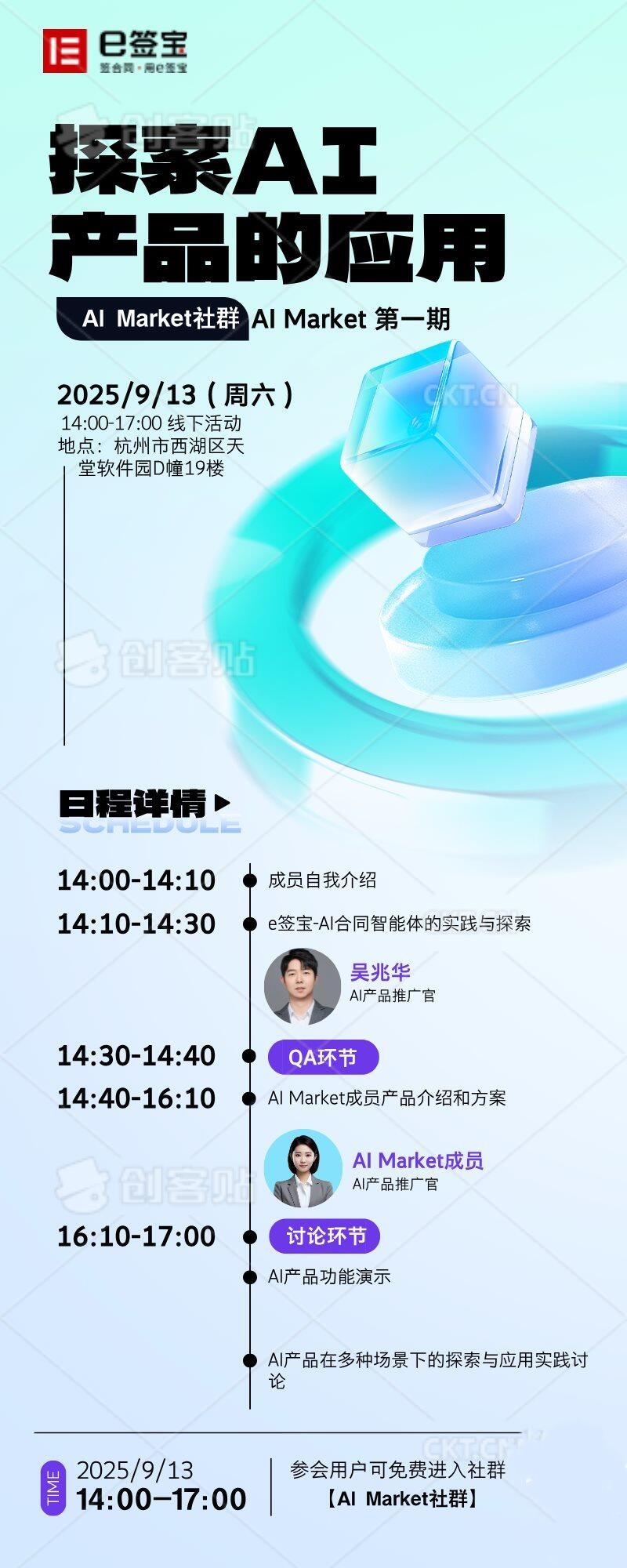 下周六(9.13)14:00,坐标杭州市西湖区天堂软件园 D 幢 19 楼,一场「探索 AI 技术的应用」主题沙龙等你——