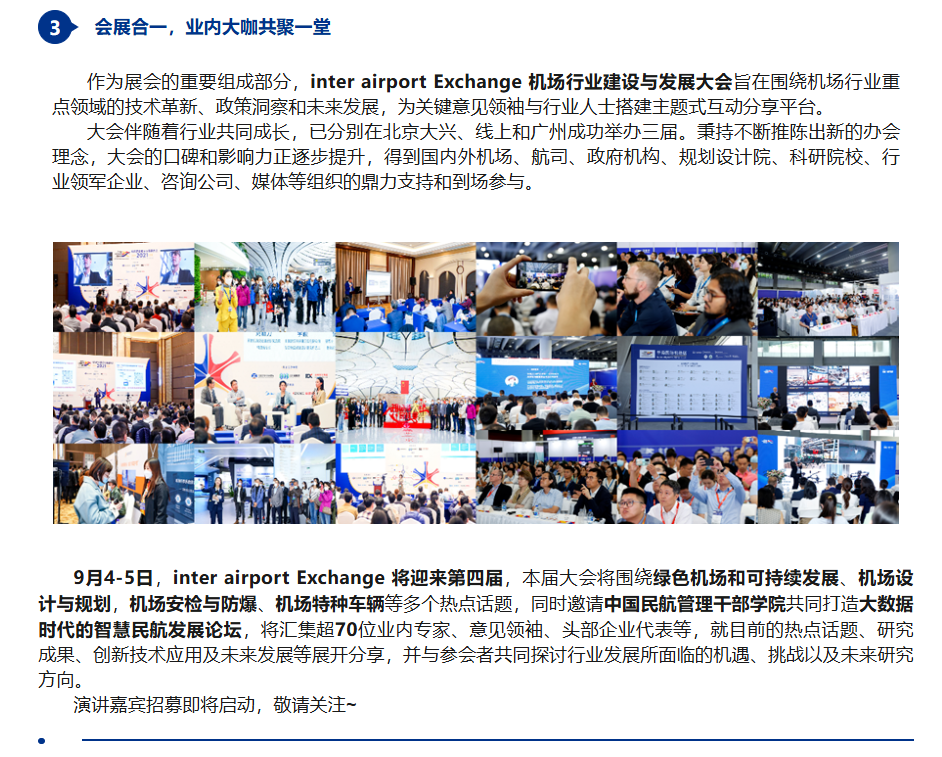 此外,为进一步推动机场安防领域的技术创新与应用。inter airport China联手深圳安全防范行业协会,共同打造机场安保科技展示区,重点展示在机场安全运行(驱鸟、无人机探测及反制设备)、智慧安保、反恐防爆和应急救援等机场安防相关的最新技术成果和应用案例,以应对机场运营中的各种安全挑战。
